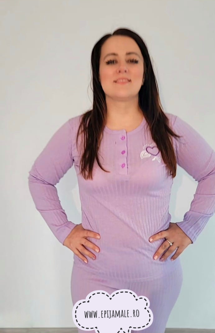Pijama dama ,bumbac, bluza cu imprimeu ,si pantalon LUNG , CULOARE- MOV DESCHIS . Cod Produs- PFR1203. CROI SLIM