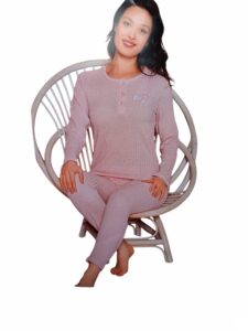Un model de pijama de dama minunat, bluza cu maneci lungi cu imprimeu ,completata de o pereche de pantaloni lungi.