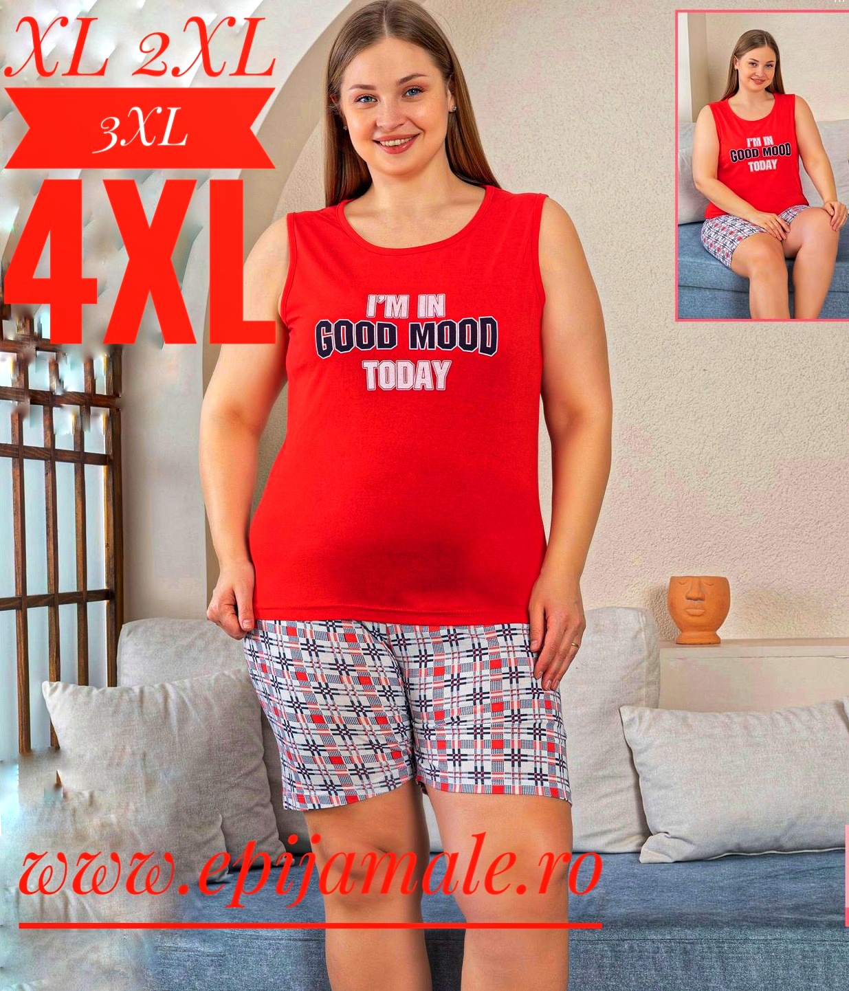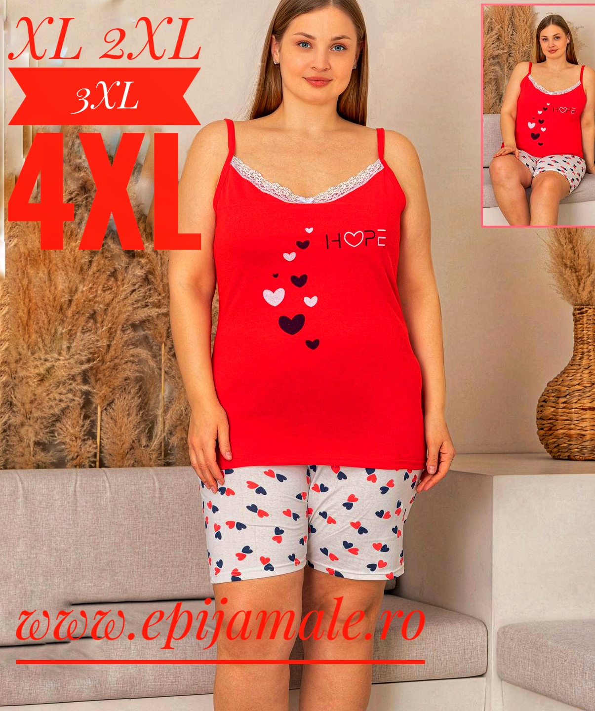 - Pijama dame, maieu cu imprimeu si pantalon scurt , croi lejer, ideale pentru un somn odihnitor!Marimi XL-2XL-3XL-4XLMetode recomandate de spalare si intretinere: