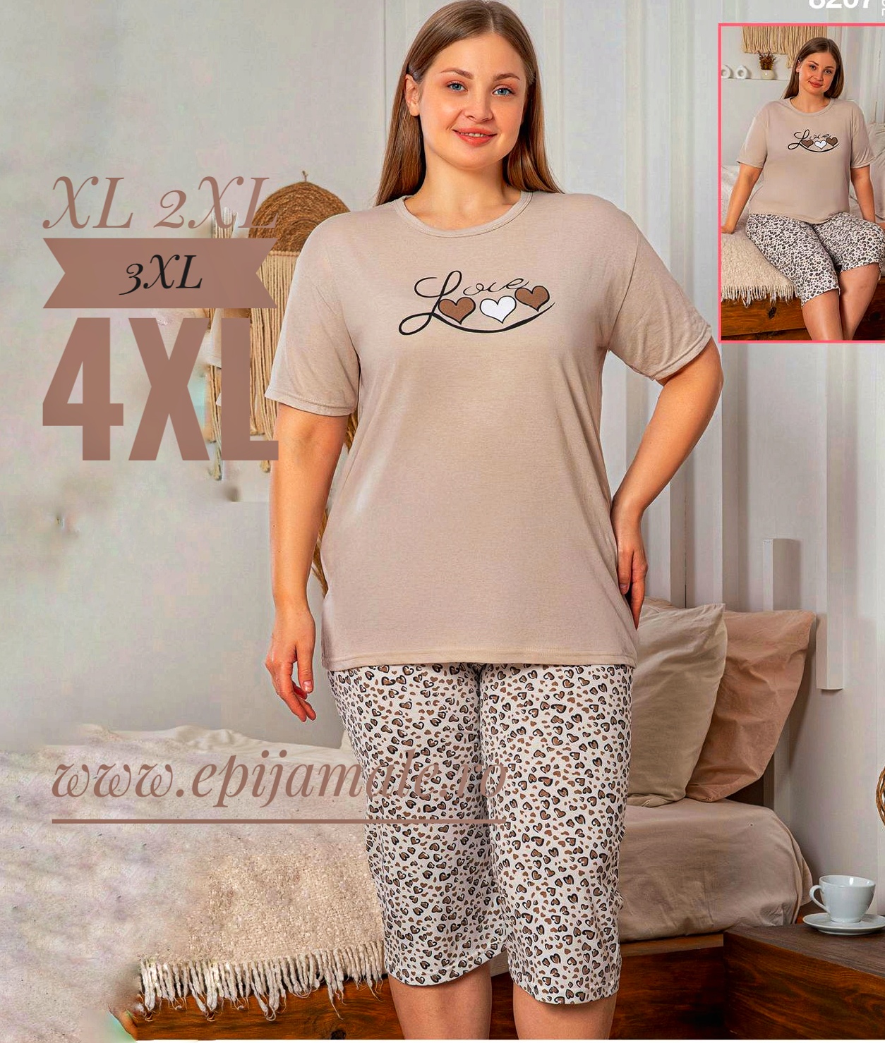- Pijama dame, bluza cu imprimeu si pantalon treisfert , croi lejer, ideale pentru un somn odihnitor!Marimi XL-2XL-3XL-4XLMetode recomandate de spalare si intretinere: