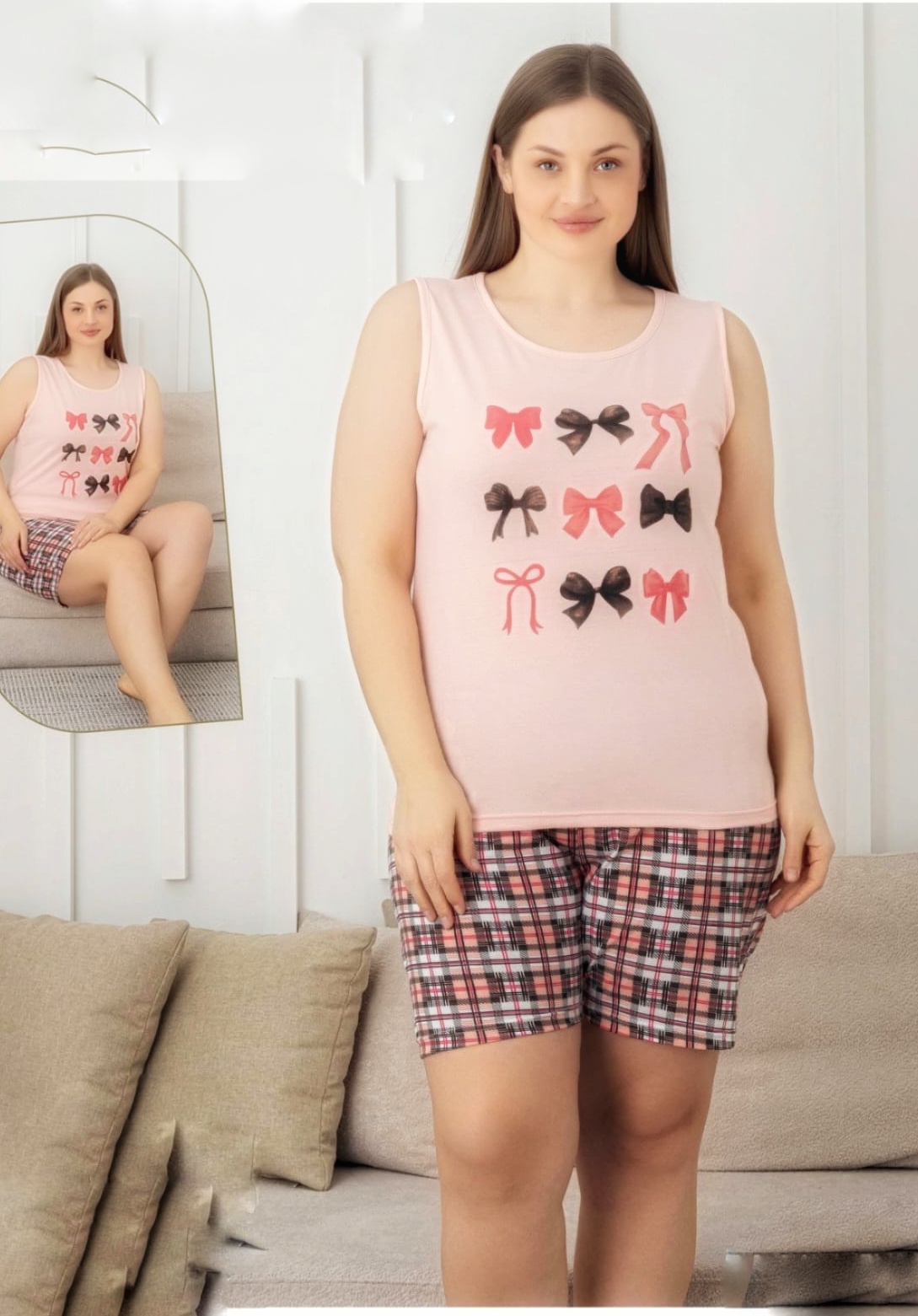 - Pijama dame , maieu cu imprimeu drăgălaș în față și pantalon scurt.