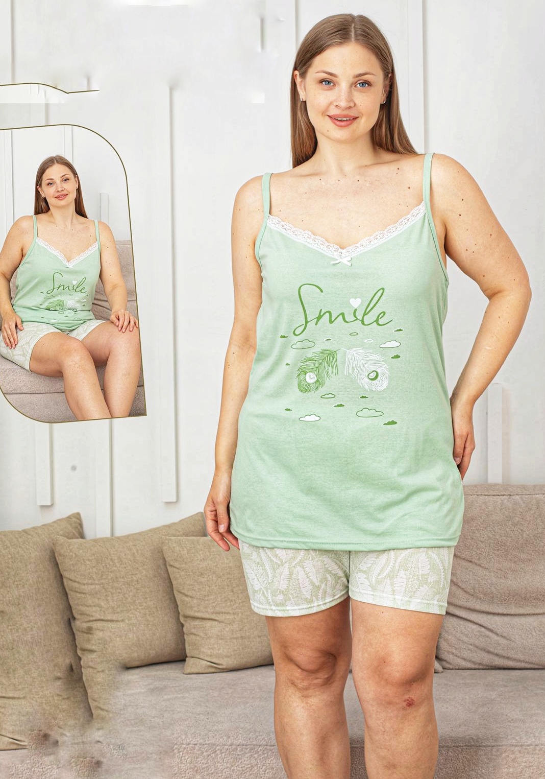 Pijama pentru dame, MAIEU cu dantelă, pantalon scurt, CULOARE -VERDE- Cod produs – PFRV819