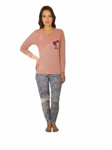 Pijama din bumbac ,bluza cu imprimeu dragalas in fata si pantalon lung cu manseta jos.