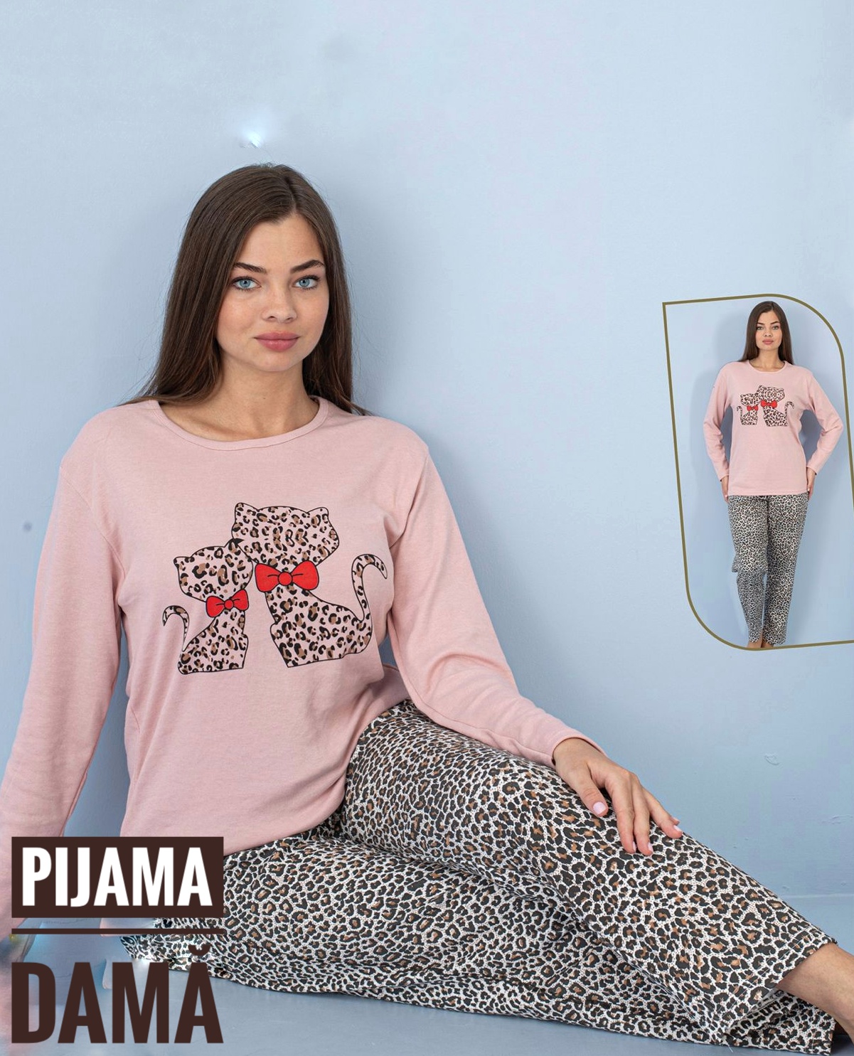 Pijama din bumbac, bluza cu imprimeu si pantalon lung, croi lejer, ideale pentru un somn odihnitor!